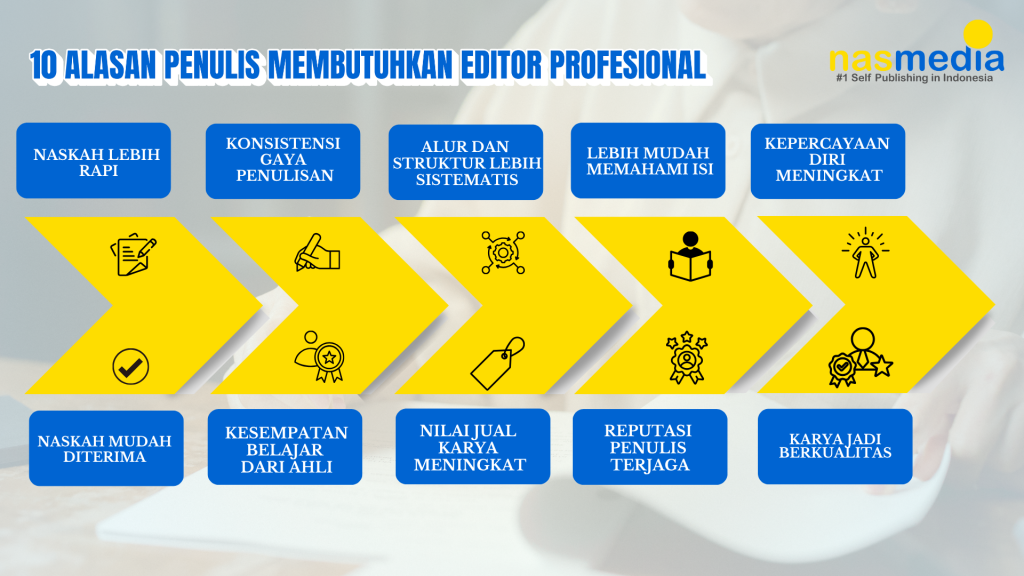Kualitas karya yang dipublikasikan menentukan reputasi seorang penulis. Naskah yang asal terbit sangat berisiko menurunkan citra penulis. Sebaliknya, dengan keterlibatan editor, reputasi dapat terjaga bahkan sejak karya pertama.