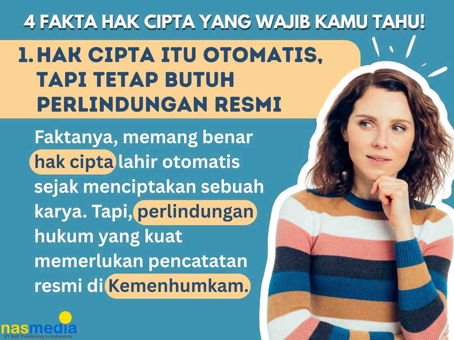 Kalau kamu menerbitkan lewat penerbit profesional seperti Nasmedia, semua langkah ini bisa dibantu oleh tim legal mereka.