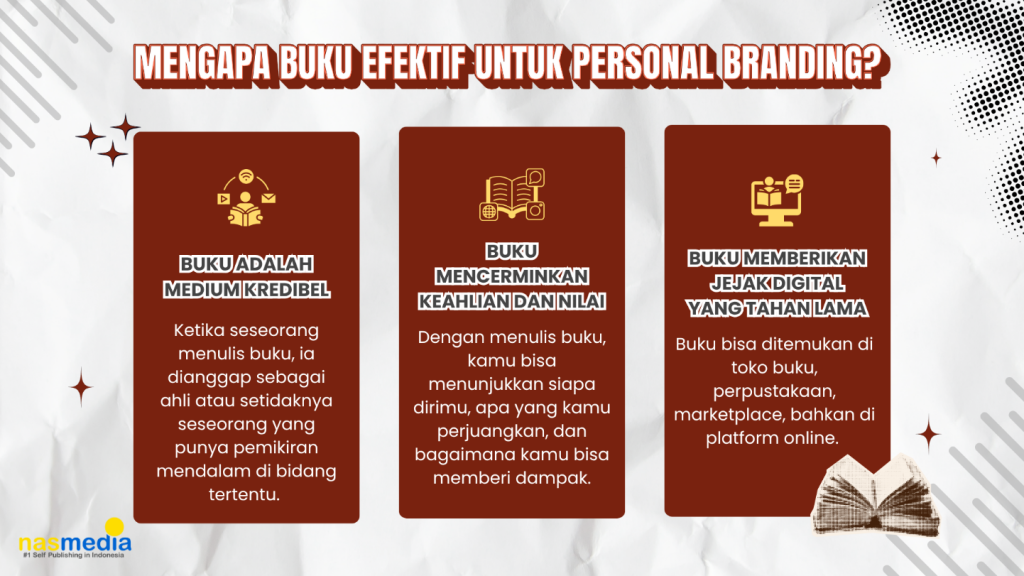 Buku mencerminkan nilai, prinsip, dan kompetensi penulisnya. Dengan menulis buku, kamu bisa menunjukkan siapa dirimu, apa yang kamu perjuangkan, dan bagaimana kamu bisa memberi dampak.