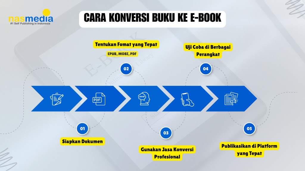 Konversi e-book adalah mengubah naskah yang sudah ditulis, baik dalam bentuk dokumen Word, PDF, atau format lainnya menjadi format digital yang dapat dibaca langsung di berbagai perangkat gadget. Pengguna e-book paling sering memilih format EPUB, MOBI, dan PDF interaktif.