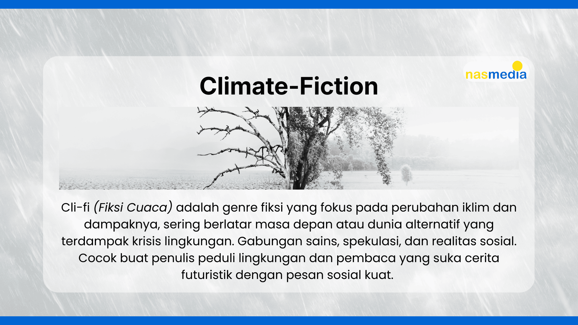 Genre ini cocok untuk penulis yang peduli isu lingkungan dan pembaca yang menyukai cerita futuristik dengan pesan sosial kuat.