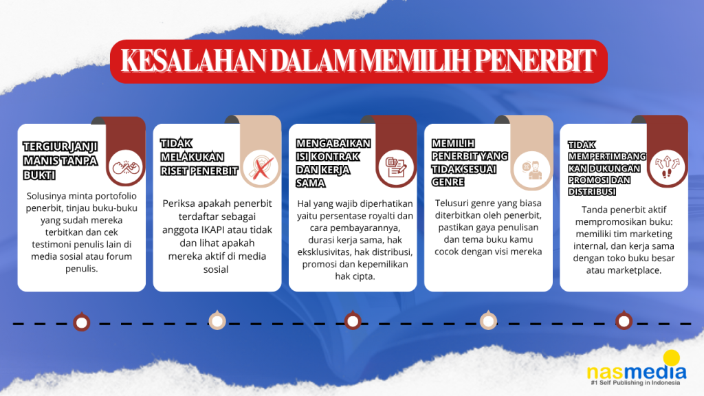 Artikel ini membahas 5 kesalahan fatal penulis dalam memilih penerbit, lengkap dengan tips strategis agar kamu bisa menghindarinya.