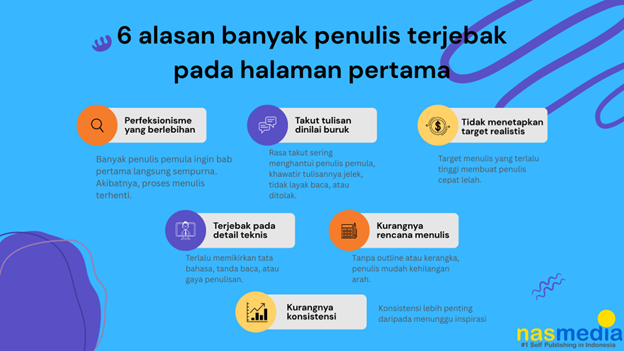 Ketika penulis terus mengulang bab pertama, proses penulisan berhenti di tempat. Alih-alih bergerak maju, penulis hanya berkutat pada bagian awal sehingga naskah tidak pernah mencapai titik akhir.
