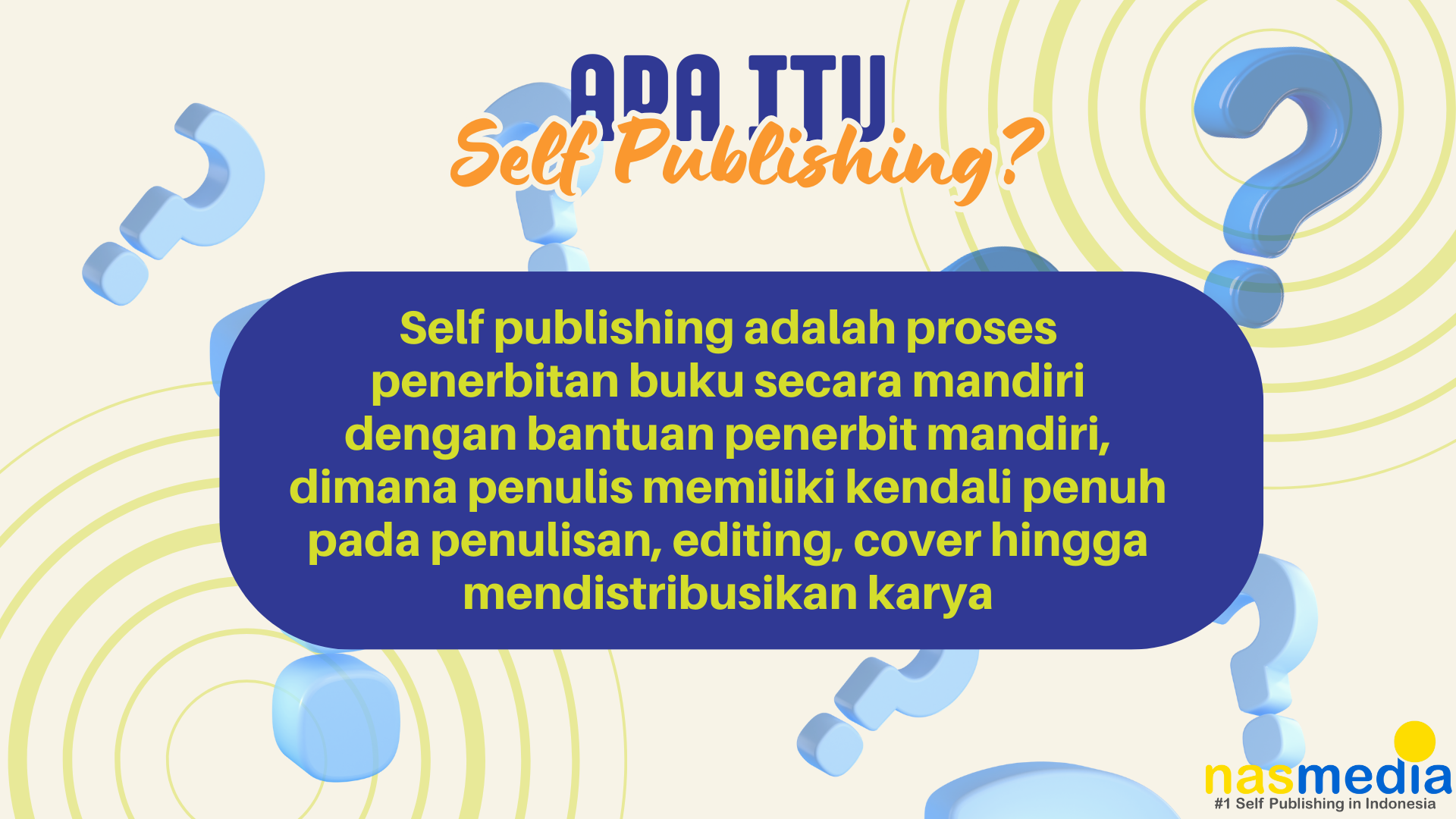 Self publishing adalah proses penerbitan buku secara mandiri dengan bantuan penerbit mandiri, dimana penulis memiliki kendali penuh pada penulisan, editing, cover, hingga mendistribusikan karya. Dengan metode ini, penulis bebas menetukan arah sekaligus strategi pemasaran, sehingga karya dapat terbit lebih cepat.