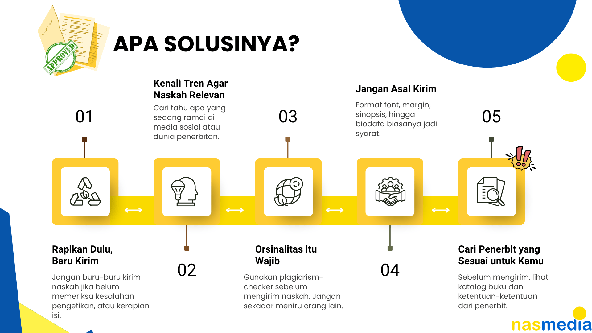 Kalau ingin mengurangi risiko penolakan, self-publishing seperti Nasmedia bisa jadi pilihan cerdas.