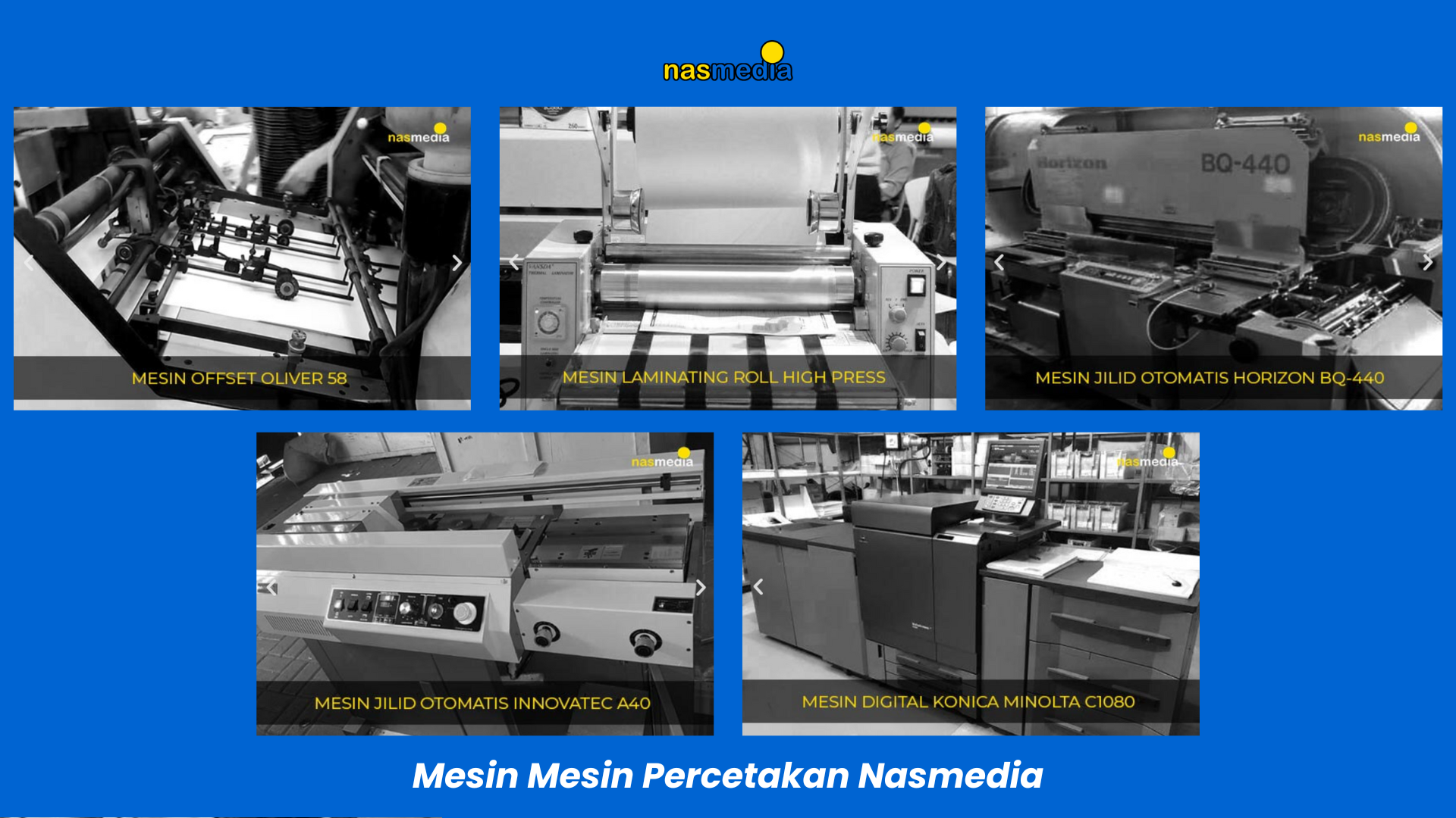 Percetakan modern tentu butuh mesin canggih. Nasmedia memiliki workshop di Sidorejo, Prambanan, dan di Batua Raya, Makassar.