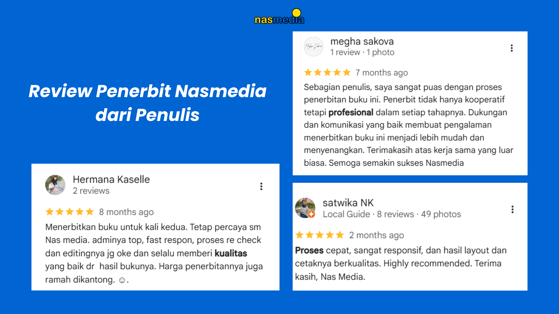 Tidak sedikit penulis sukses yang mempercayakan karya mereka untuk dicetak Nasmedia.
