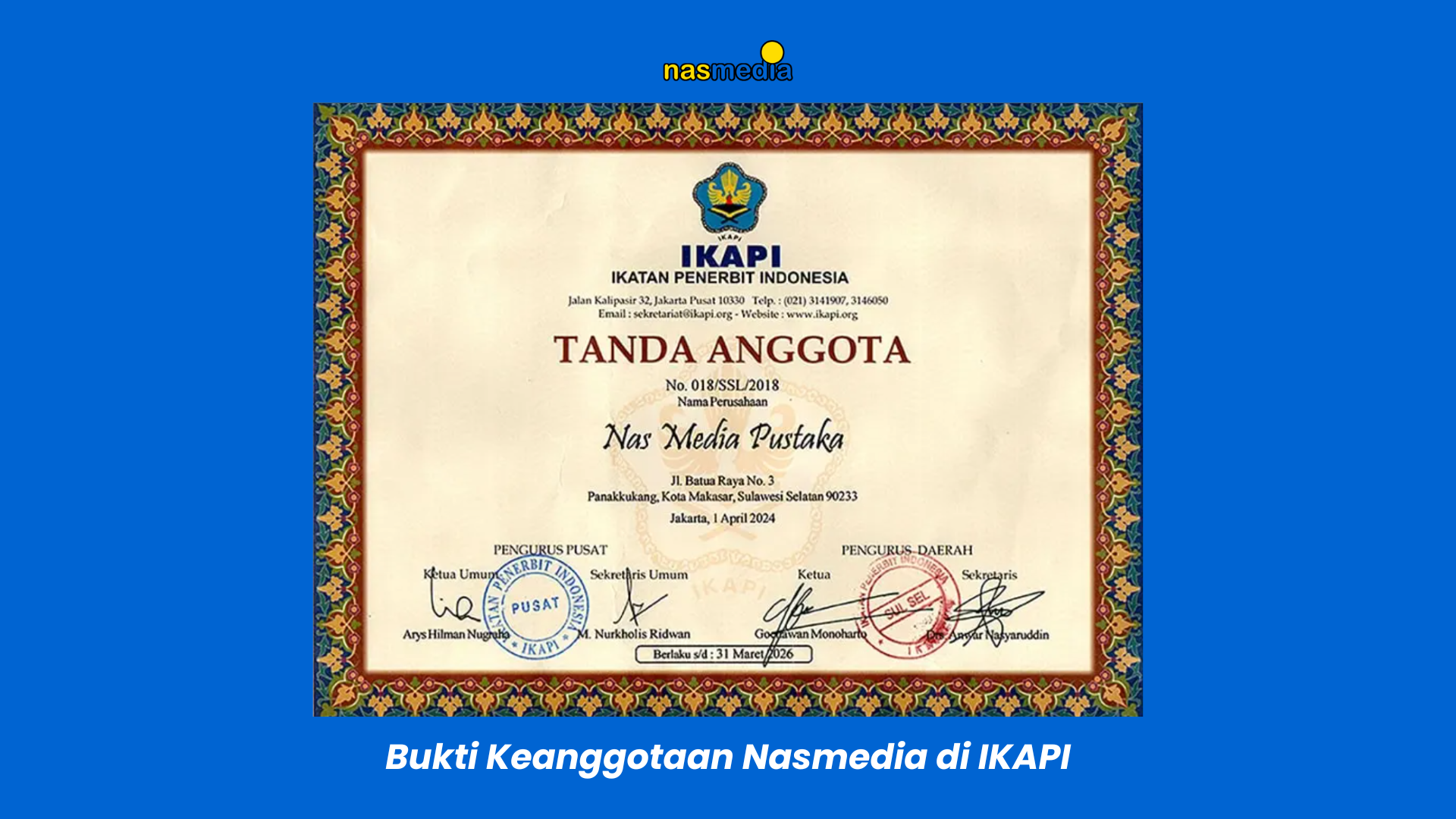 Keanggotaan ini menambah kredibilitas sekaligus menunjukkan bahwa Nasmedia berkomitmen menjaga standar penerbitan nasional.