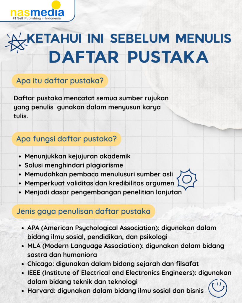 Cara menulis daftar pustaka sesuai jenis dan gaya penulisannya menjadi fondasi utama untuk menjaga kredibilitas karya ilmiah. Dengan kata lain, penulis yang menulis daftar pustaka dengan rapi menunjukkan ketelitian sekaligus menghargai sumber yang digunakan. Sehingga, daftar pustaka yang konsisten memudahkan pembaca menelusuri referensi asli dan memperkuat kepercayaan terhadap isi tulisan.