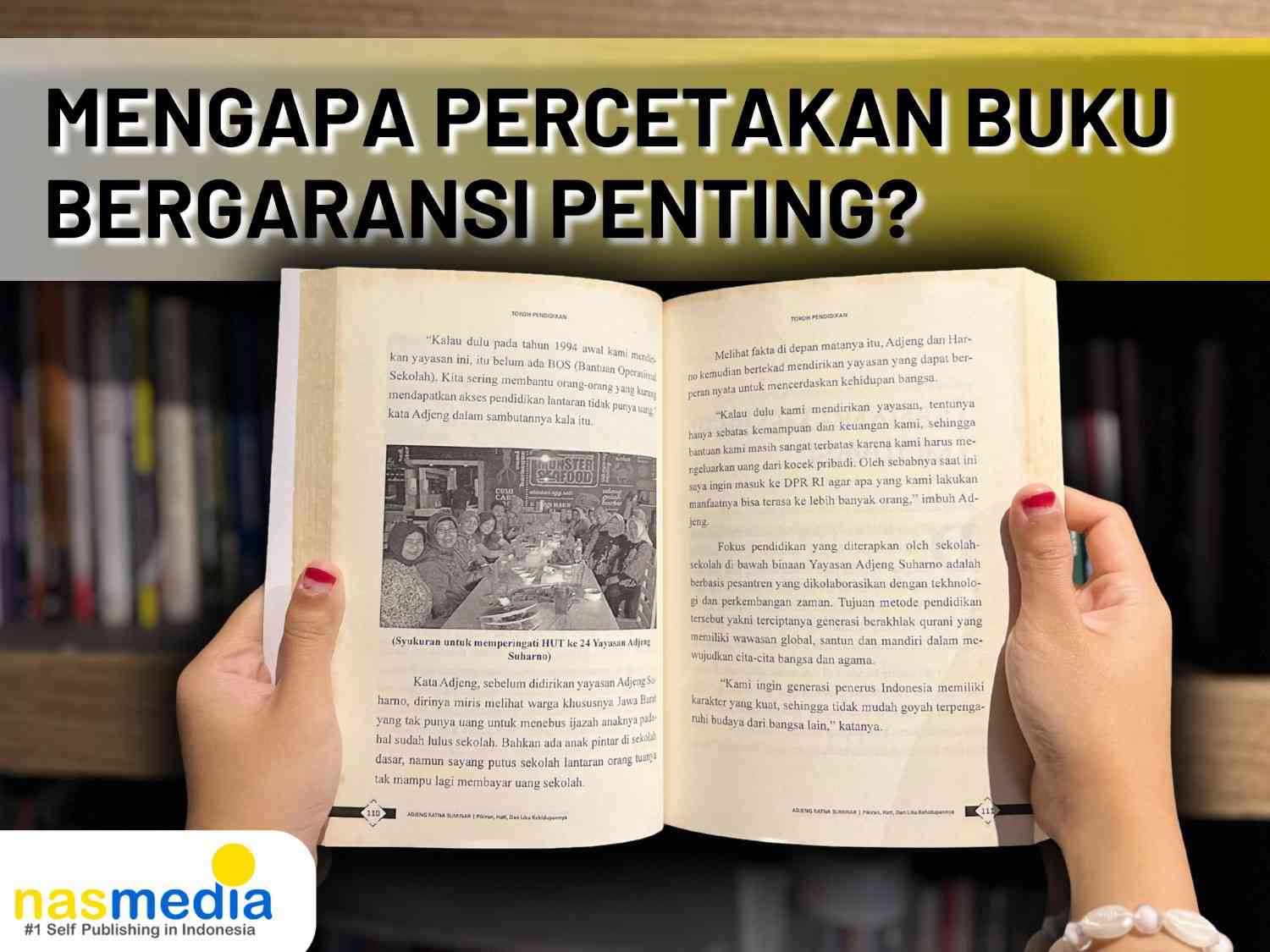 Nasmedia tidak sembarangan dalam memilih bahan cetak. Mereka menggunakan kertas pilihan, tinta berkualitas tinggi, dan mesin cetak modern agar hasil buku punya kesan profesional dan awet.