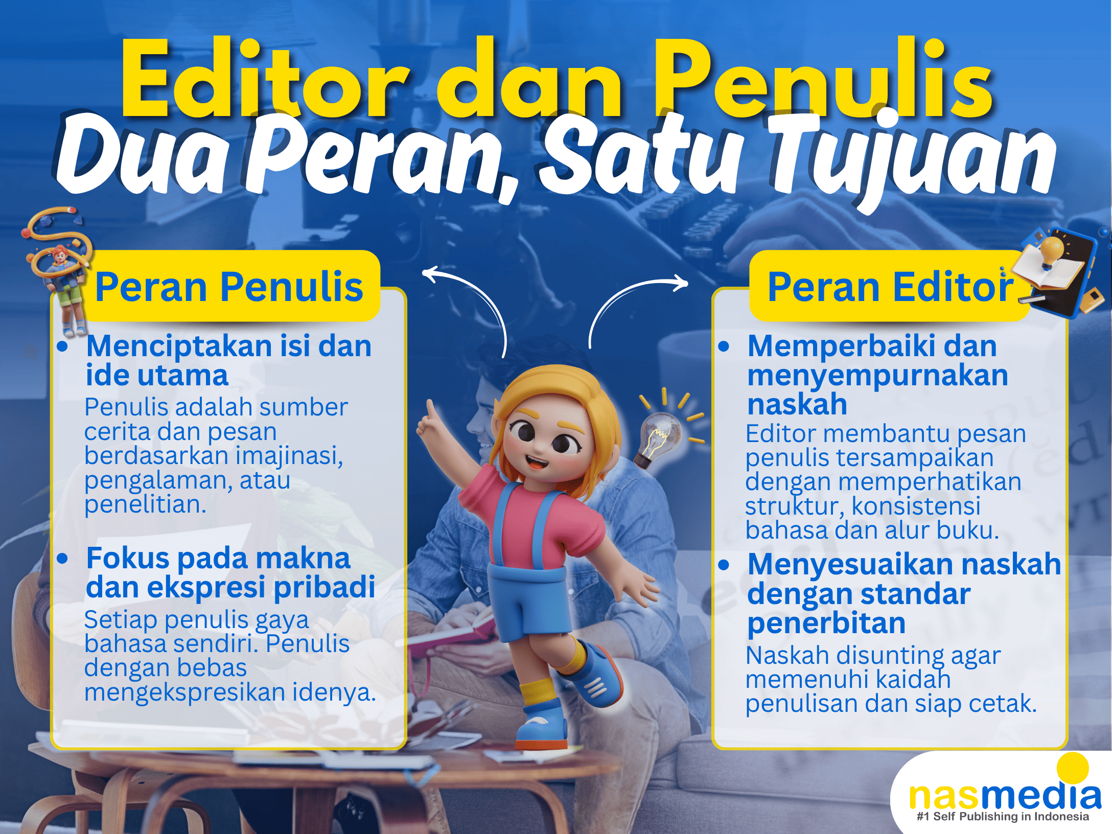 Dalam proses penerbitan, penulis dan editor memiliki peran yang berbeda, tetapi sama-sama bekerja untuk menghasilkan naskah terbaik. Berikut perbedaan peran keduanya: