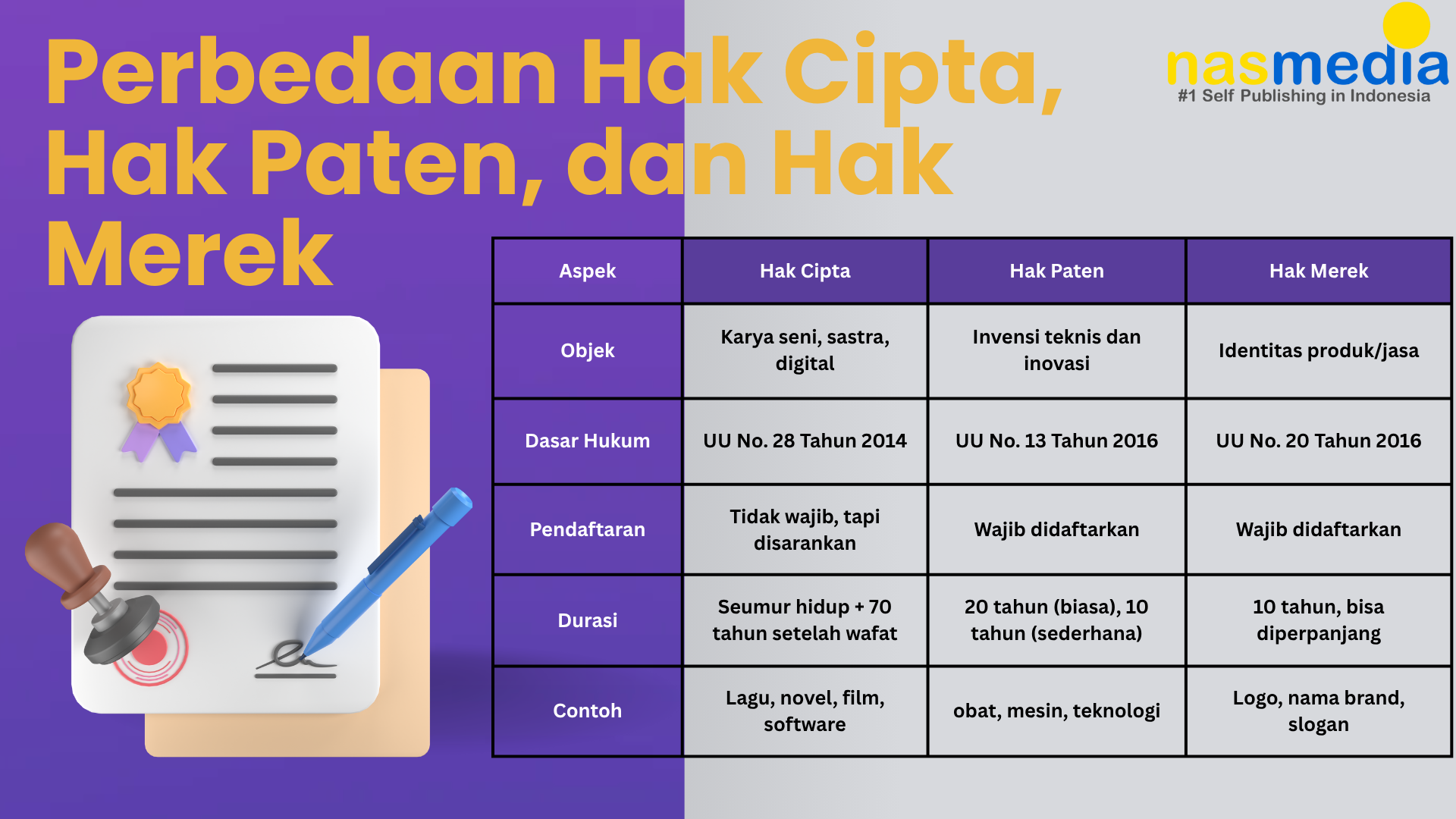 Penulis, inventor, dan pebisnis perlu memahami perbedaan ini agar dapat melindungi karya secara hukum dan meningkatkan nilai komersial. Perlindungan yang tepat tidak hanya menjaga hak, tetapi juga memperkuat posisi di pasar dan membuka peluang ekonomi yang berkelanjutan.