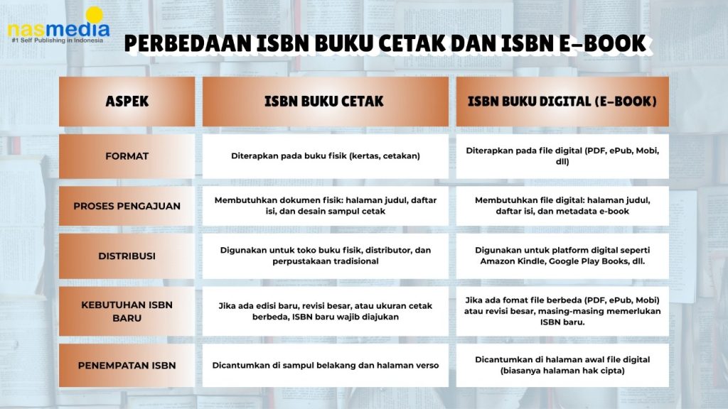 - E-ISBN berlaku untuk distribusi di platform digital seperti Google Play Books, Amazon Kindle, hingga Gramedia Digital.