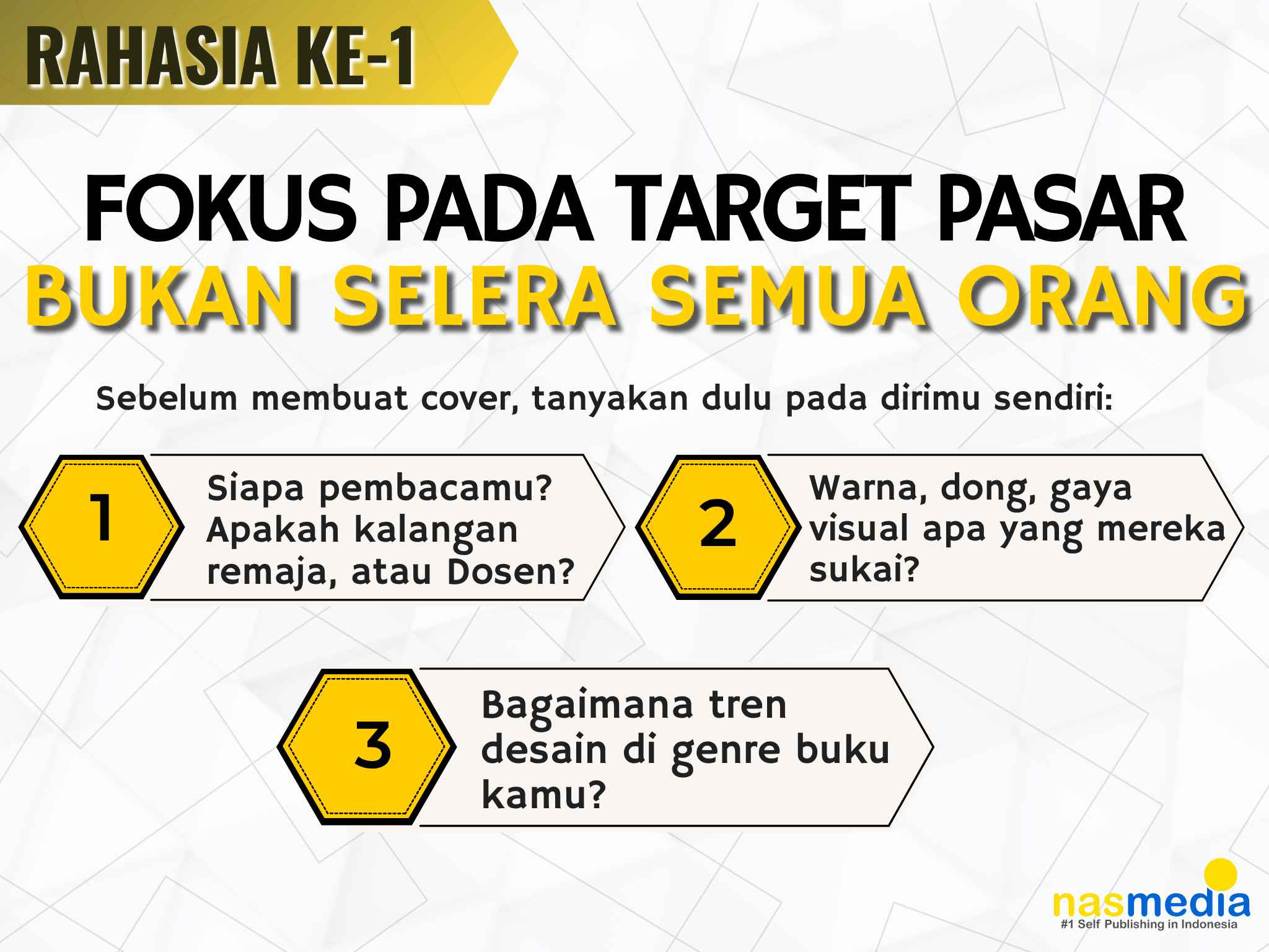 Jadi, kamu harus merancang cover buku yang menjual khusus untuk orang yang benar-benar jadi sasaran bukumu, bukan untuk semua orang di luar sana.