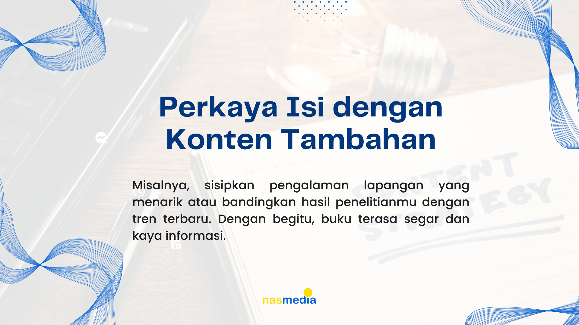 Misalnya, sisipkan pengalaman lapangan yang menarik atau bandingkan hasil penelitianmu dengan tren terbaru. Dengan begitu, buku terasa segar dan kaya informasi.