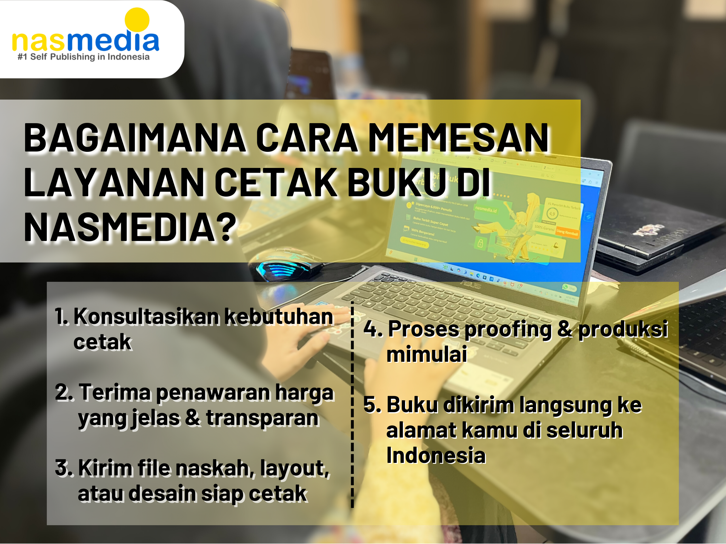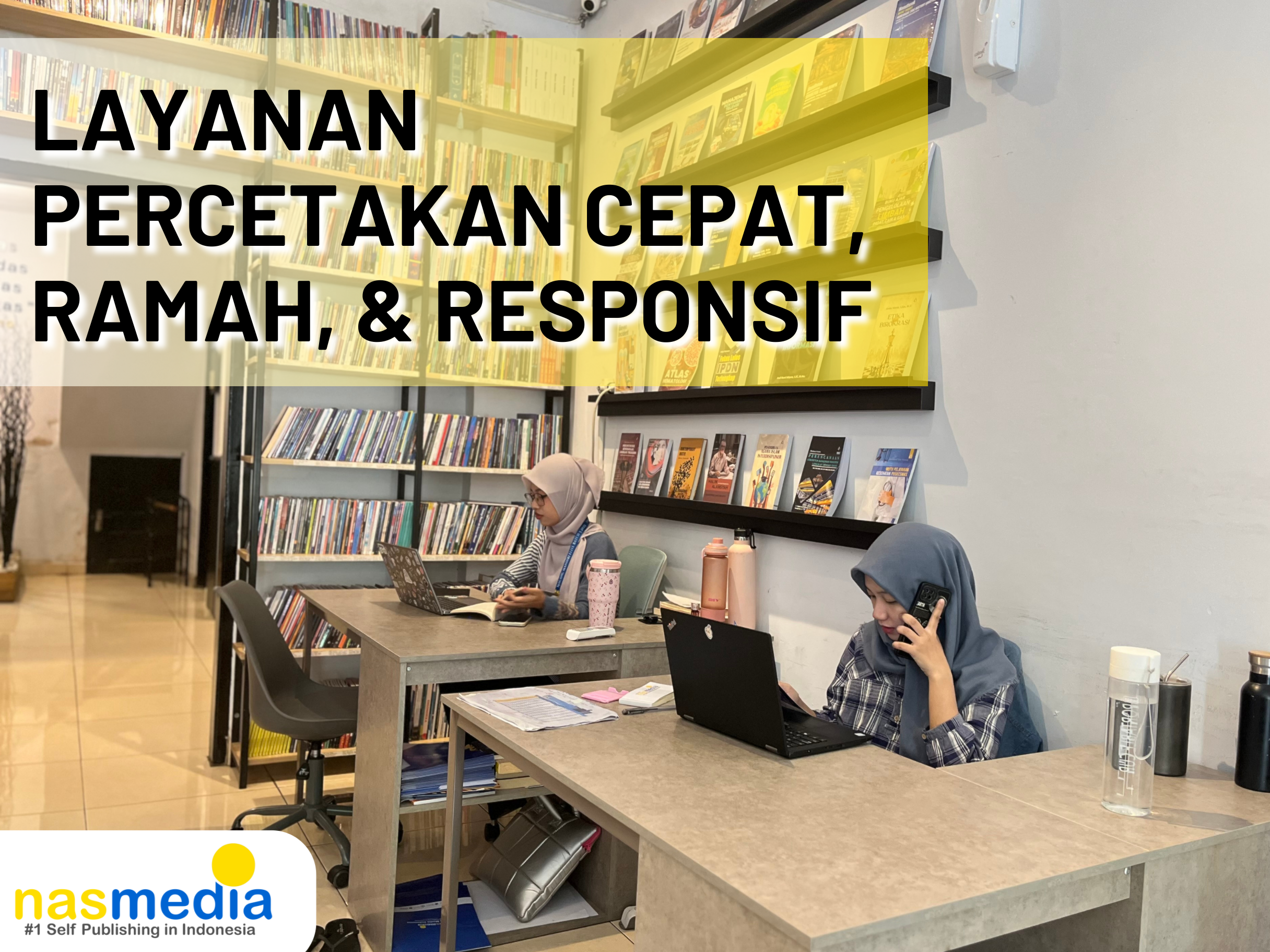 - Konsultasikan kebutuhan cetak kamu dengan CS Nasmedia, mulai dari jenis buku, ukuran, jumlah eksemplar, desain, dan promosi,