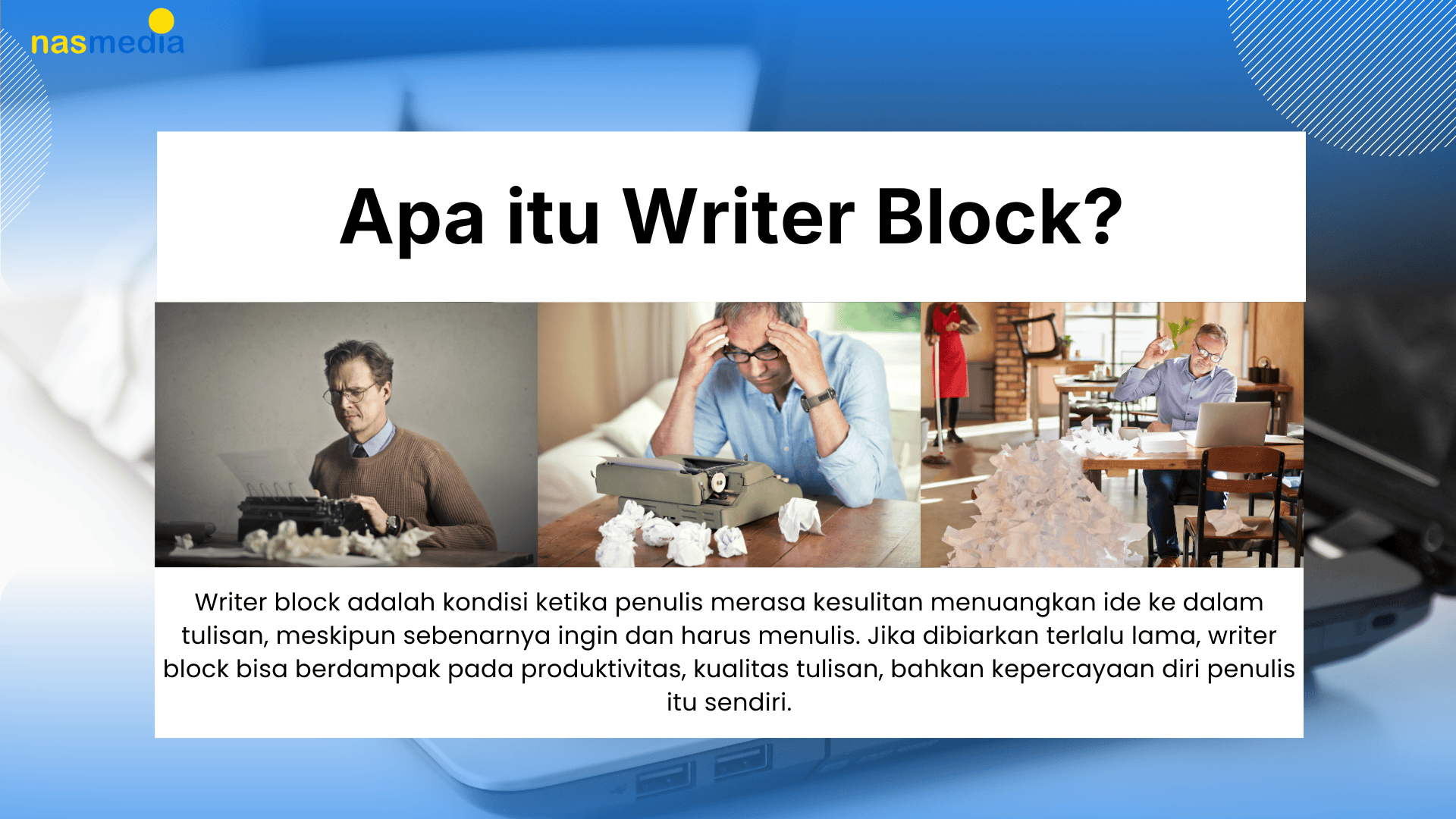 Writer block adalah kondisi ketika penulis merasa kesulitan menuangkan ide ke dalam tulisan, meskipun sebenarnya ingin dan harus menulis.
