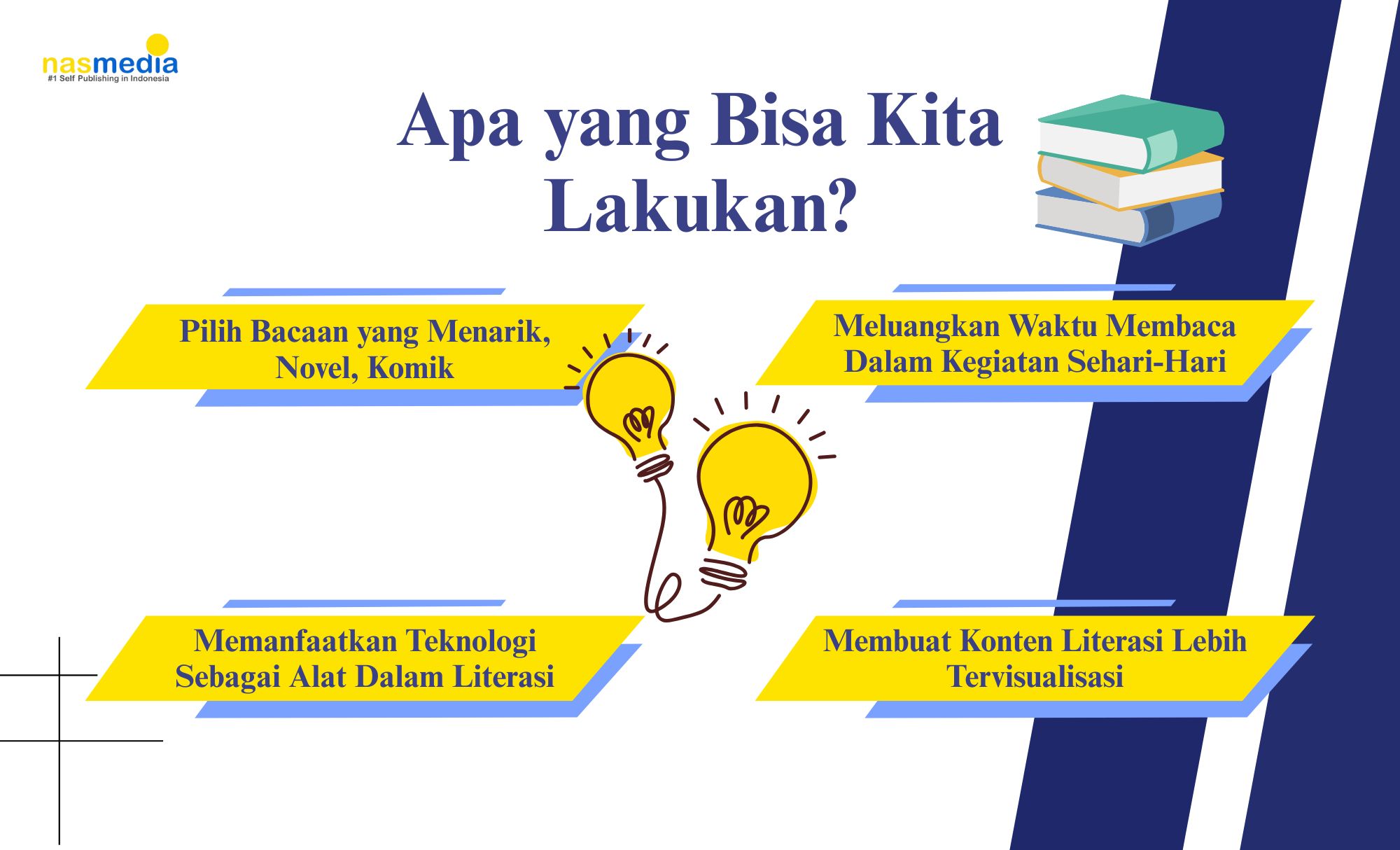Seperti untuk meingkatkan minat baca, kamu bisa gunakan e-book, audiobook, atau aaplikasi yang mempermudah membaca di mana saja.
