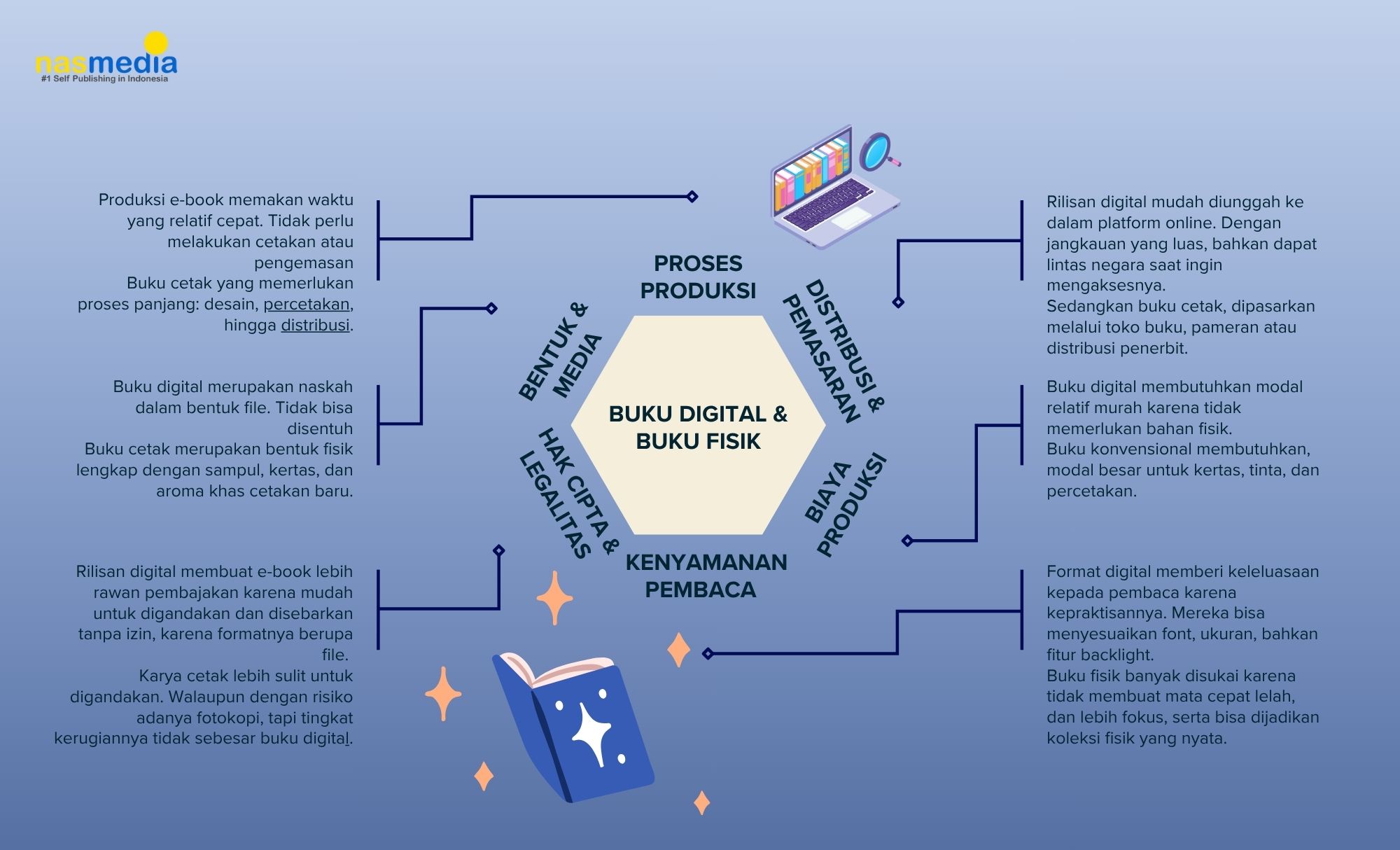 Padahal, keduanya punya kelebihan dan kekurangan yang akan memengaruhi cara kamu menerbitkan buku.