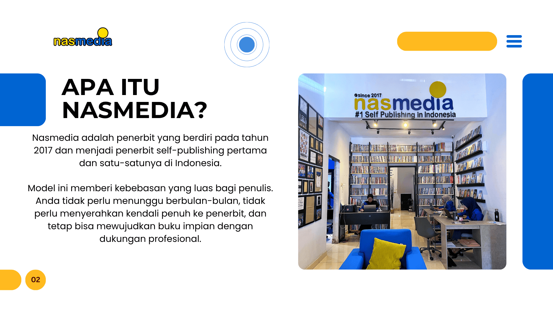 Jadi, tidak ada proses seleksi naskah yang panjang seperti penerbit mayor. Anda tinggal menyiapkan naskah, Nasmedia akan mengurus desain, layout, editing, dan publikasi. Semuanya dengan sistem cepat dan transparan.
