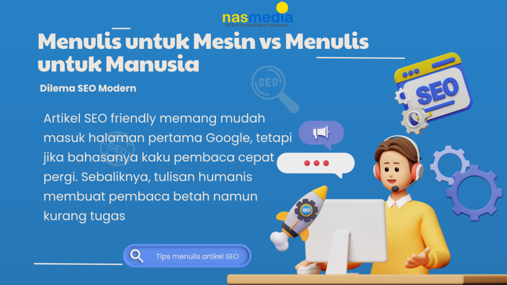 Di era digital, menulis bukan lagi sekadar hobi atau sarana ekspresi. Menulis kini menjadi strategi penting dalam komunikasi, pemasaran, dan branding. Namun, penulis konten sering menghadapi dilema: haruskah kita menulis untuk mesin pencari, atau menulis untuk manusia?