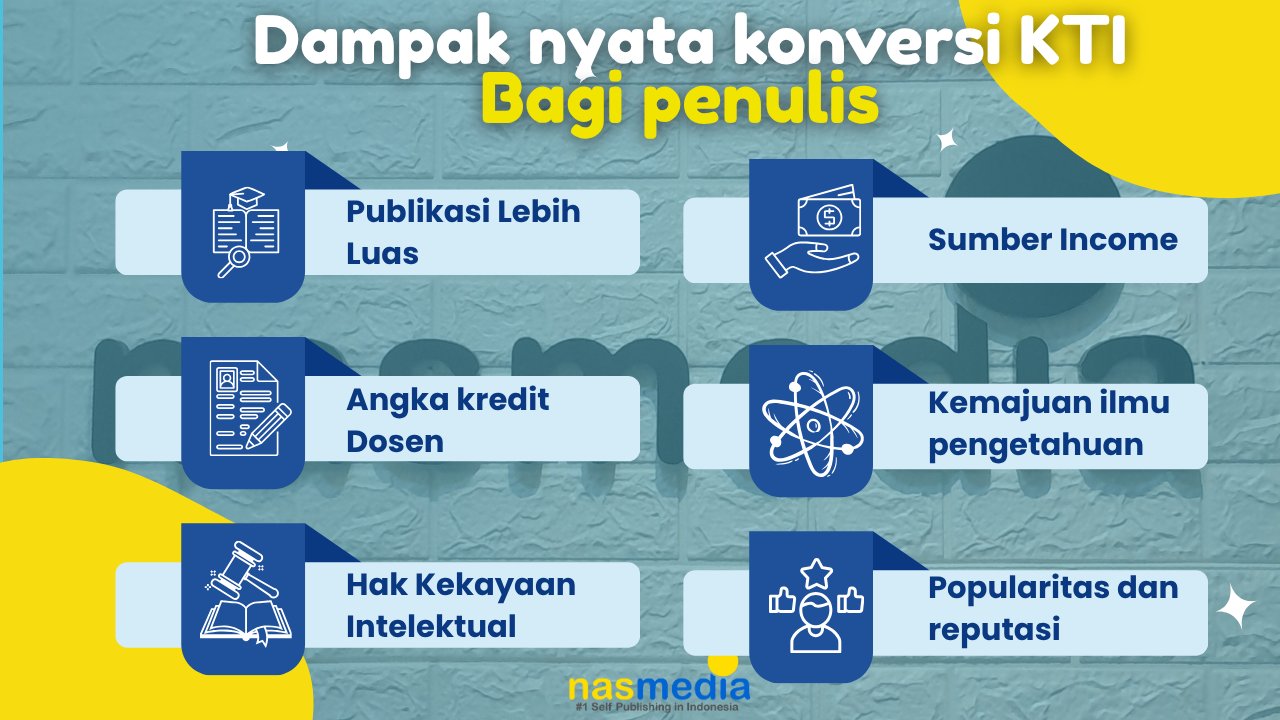 Konversi KTI menjadi buku meningkatkan angka kredit dosen untuk mengejar jenjang struktural akademik (KUM). Setiap buku yang terbit menambah nilai akademik sekaligus memperkuat posisi di dunia pendidikan tinggi.