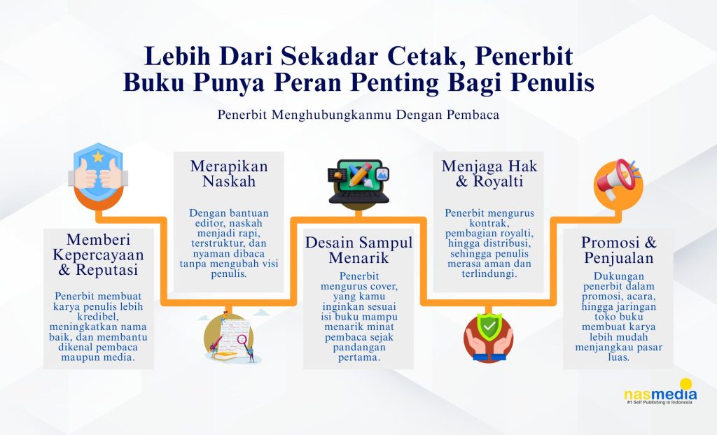 Banyak yang berpikir penerbit hanya bertugas menyalin naskah menjadi bentuk buku. Padahal, peran mereka jauh lebih dalam.