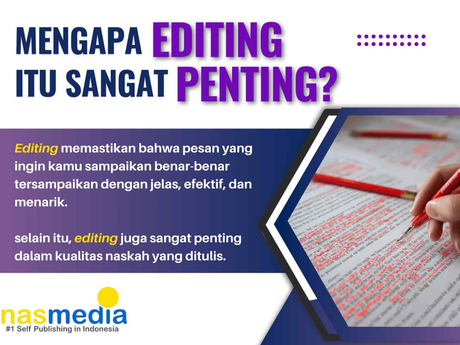 Melihat betapa krusialnya peran editing dalam menentukan kualitas naskah, wajar jika banyak penulis akhirnya memilih menyerahkan proses ini kepada editor profesional. Nah, ada rekomendasi penerbit yang bisa membantu dalam menyempurnakan naskah hingga terbit, yaitu Nasmedia.