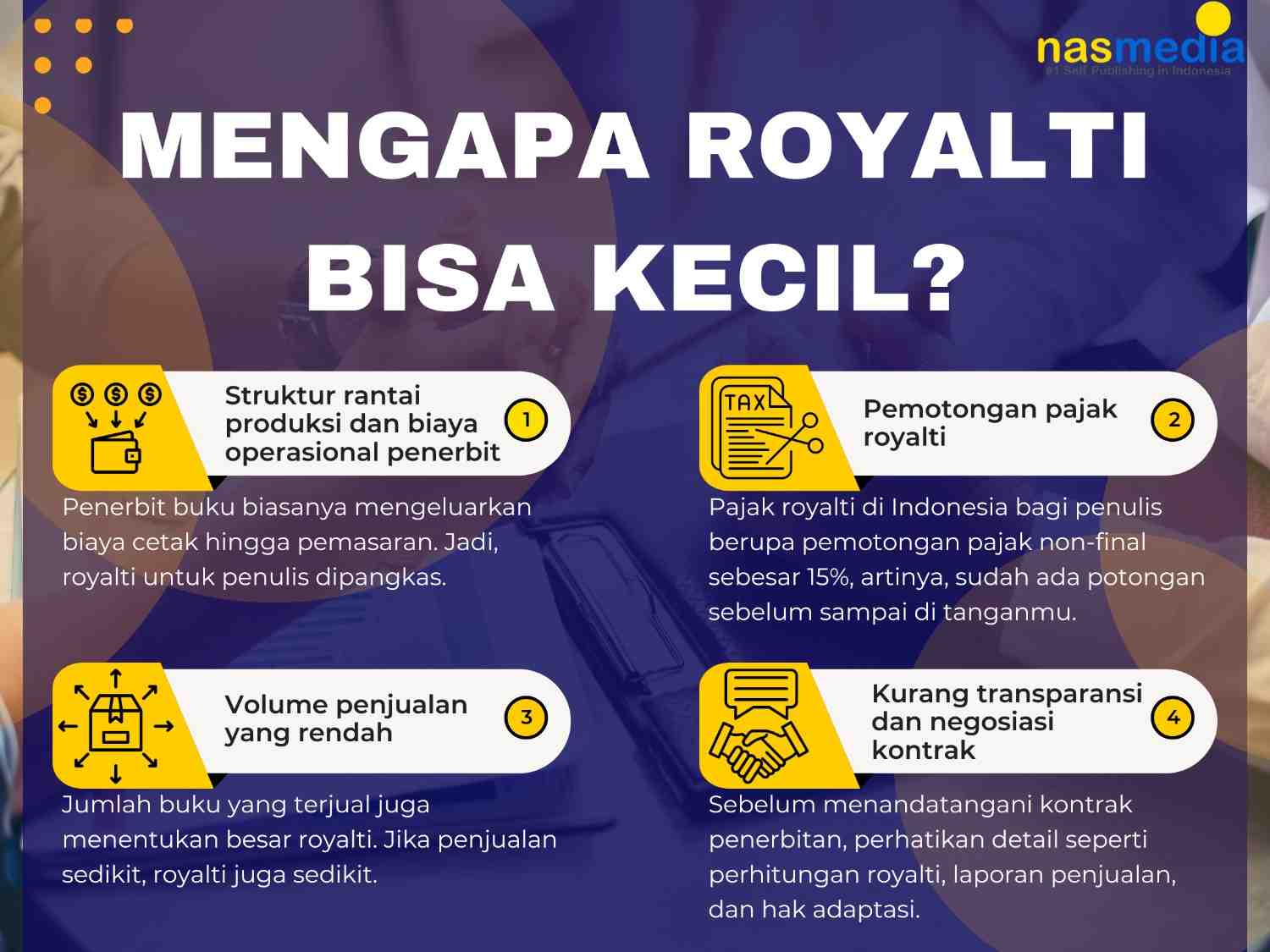 Di dunia penerbitan, royalti penulis umumnya hanya di kisaran 8–12 % dari harga jual buku atau bahkan lebih rendah tergantung penerbit.