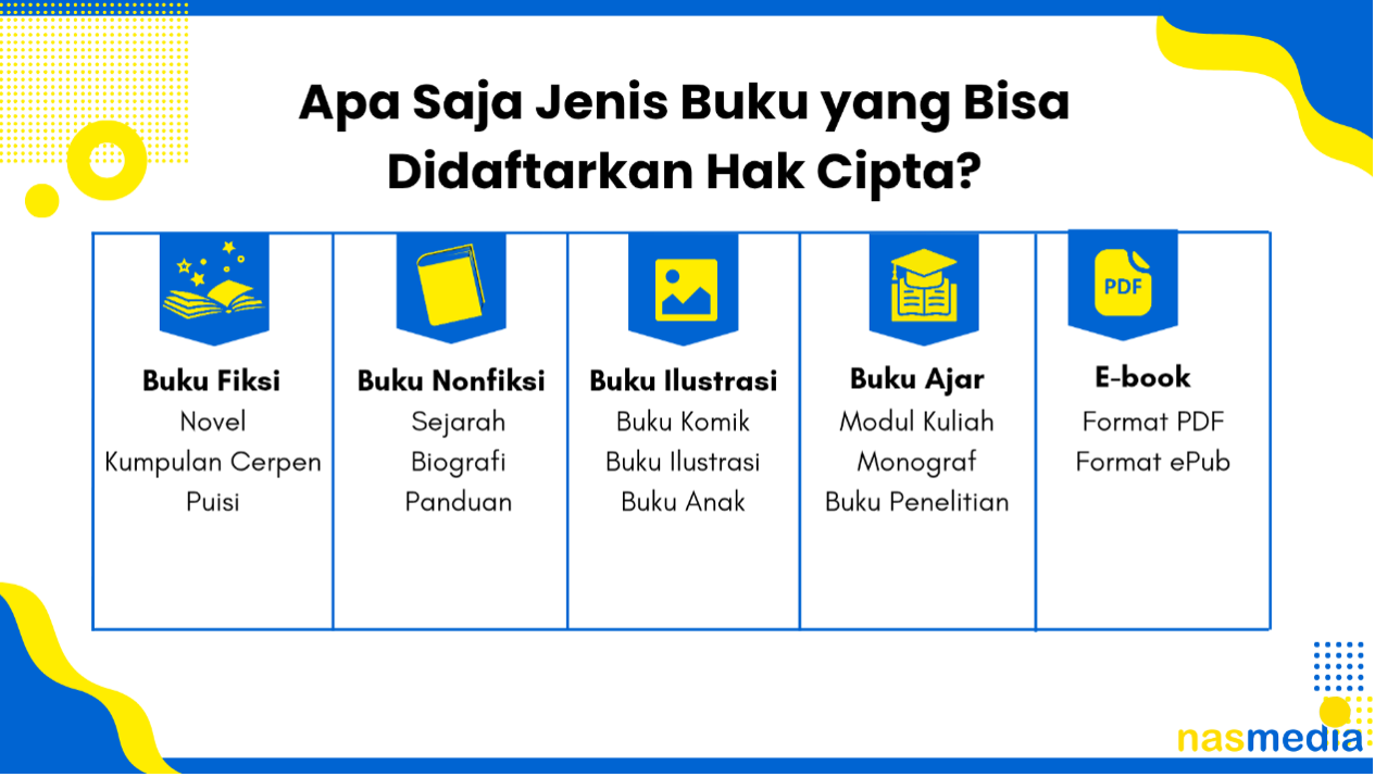 Bukan hanya itu, buku ajar dan referensi akademik seperti modul kuliah, monografi, atau buku penelitian juga bisa kamu amankan dengan hak cipta.