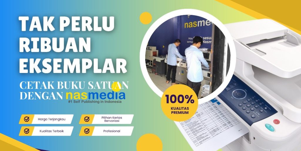 Disinilah Nasmedia hadir, sebagai penerbit terpercaya yang menawarkan layanan cetak satuan. Melalui layanan ini, penulis tidak perlu lagi menanggung risiko stok menumpuk. Cukup cetak buku sesuai kebutuhan, bahkan mulai dari 1 eksemplar saja.