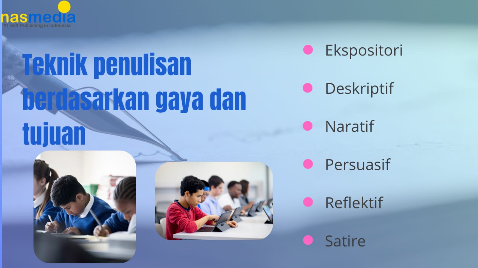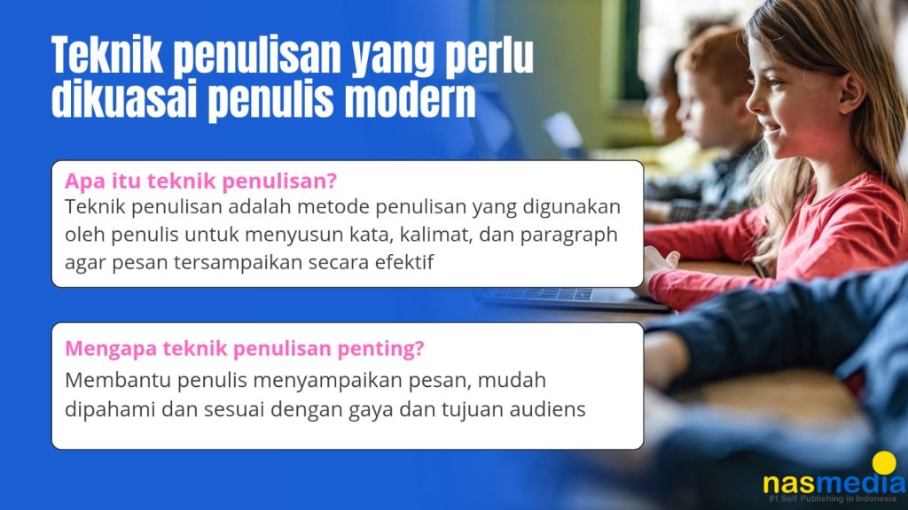 Teknik penulisan perlu dikuasai penulis modern dalam menghasilkan karya tulis yang efektif, menarik, dan sesuai tujuan. Menulis bukan hanya soal menuangkan ide, tetapi juga memilih teknik yang tepat agar pesan tersampaikan dengan jelas.