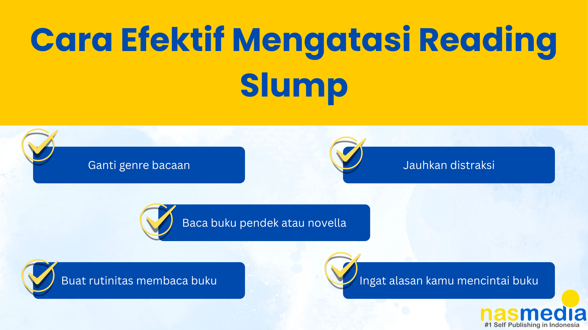 Meskipun reading slump terasa mengganggu, kamu bisa mengatasinya dengan strategi yang tepat.