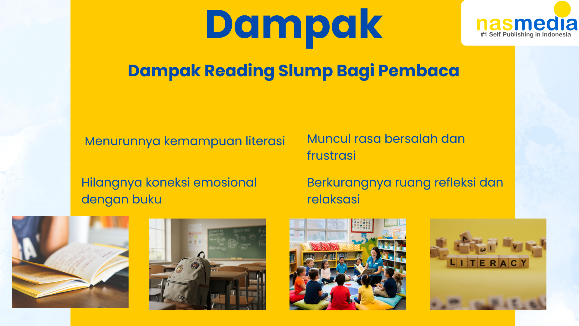Lebih jauh lagi, reading slump tidak hanya memengaruhi kecepatan membaca, tetapi juga memengaruhi suasana hati, produktivitas, dan hubungan emosional dengan buku.