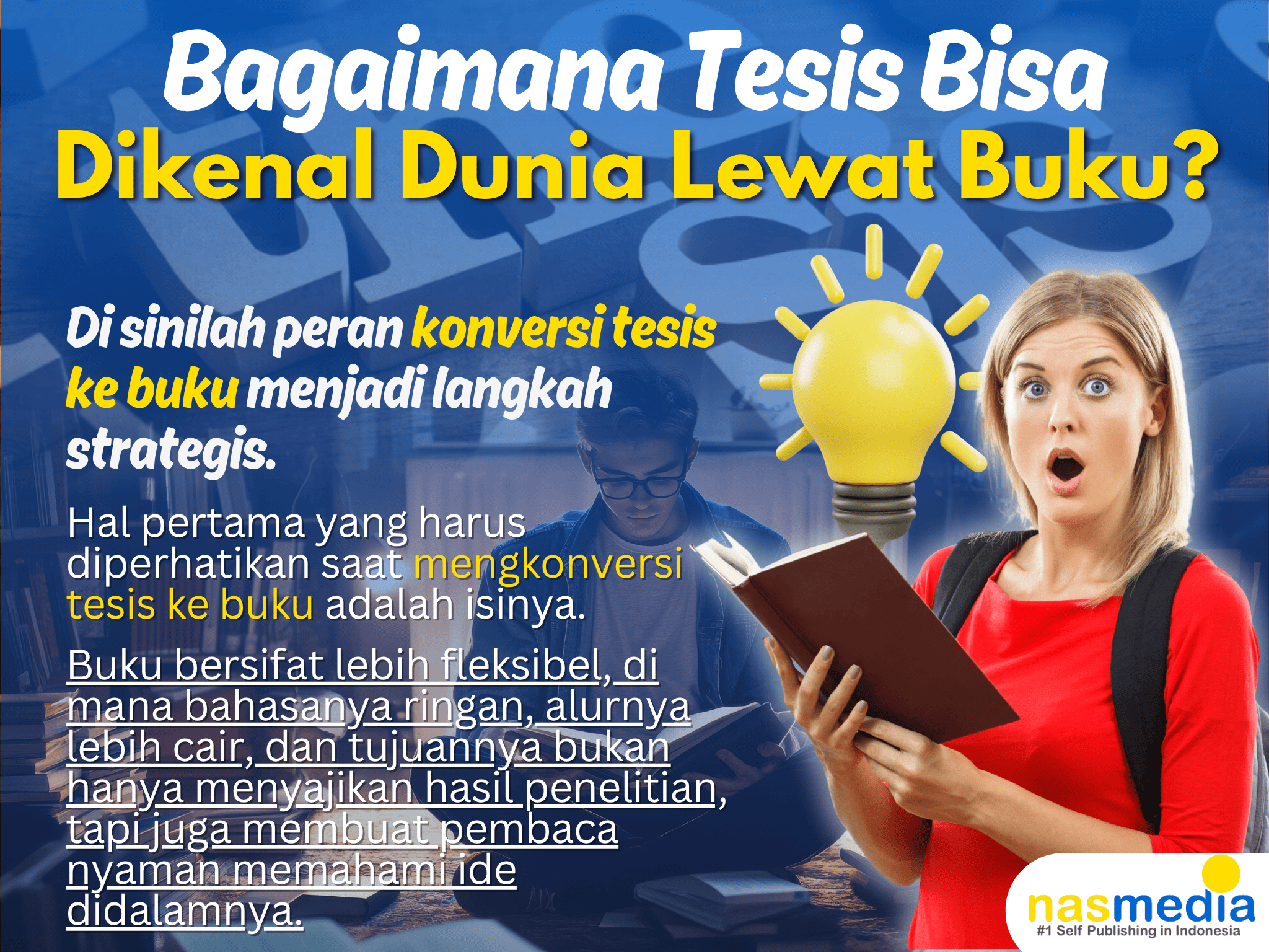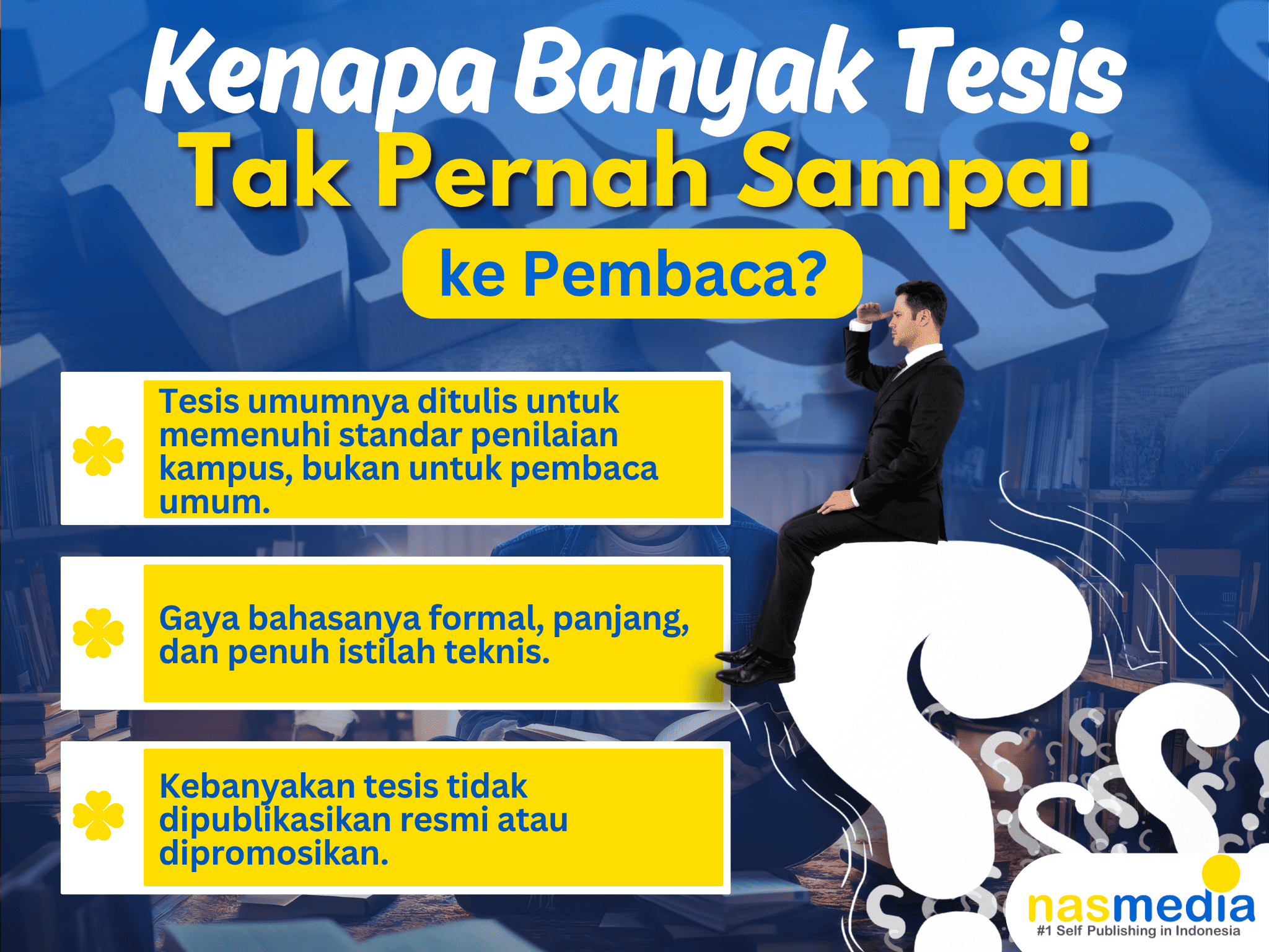 Mungkin masalahnya bukan di kualitas tulisan, tapi di wadahnya. Di sinilah konversi tesis menjadi buku bisa membuka jalan baru, membuat tulisan lebih mudah diterima di kalangan pembaca.