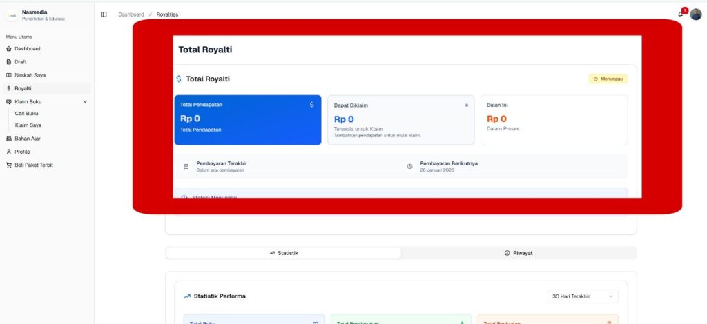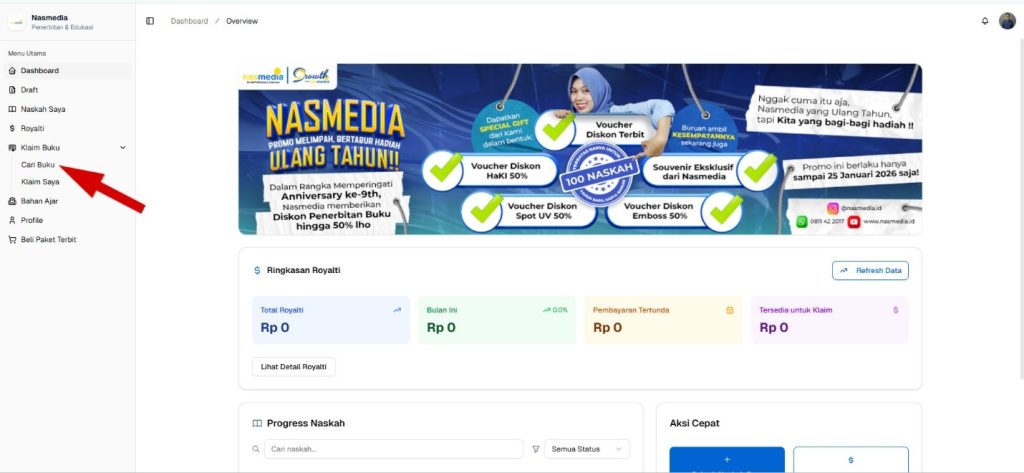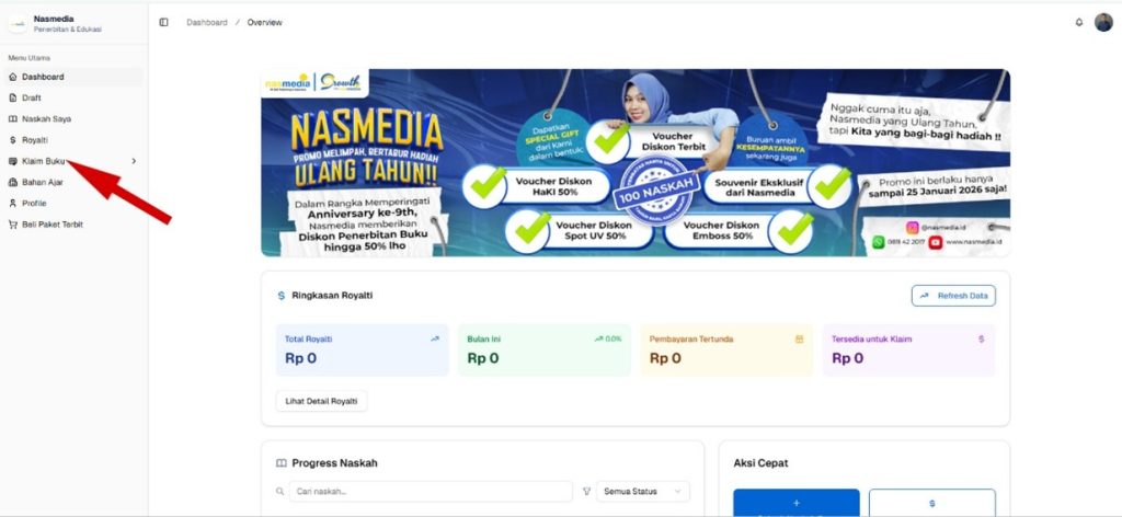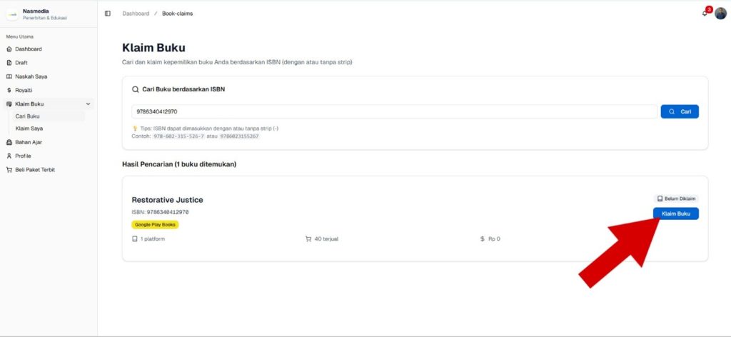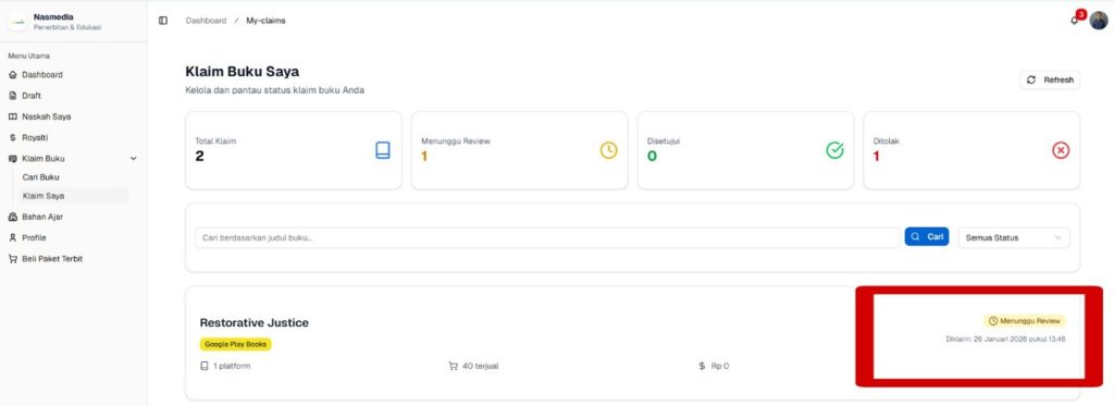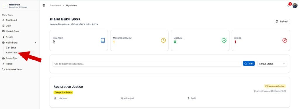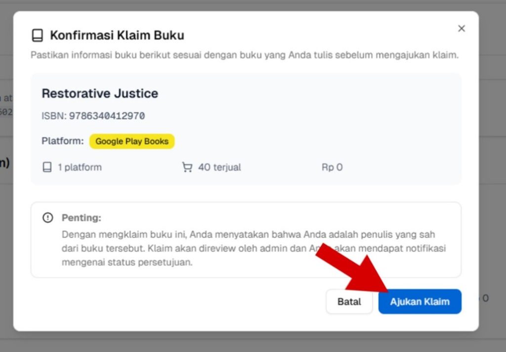 Pada tombol Klaim Buku pada halaman dashboard penulis