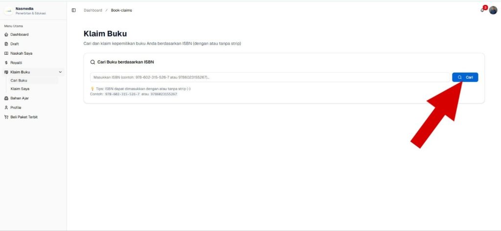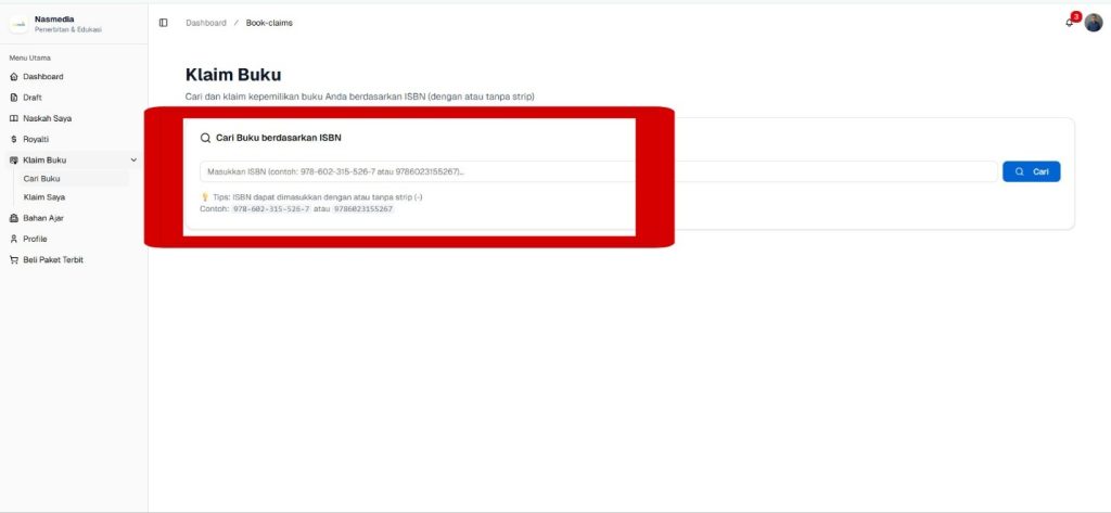 Pada Halaman ”Klaim Buku”, Masukkan nomor ISBN buku milik penulis